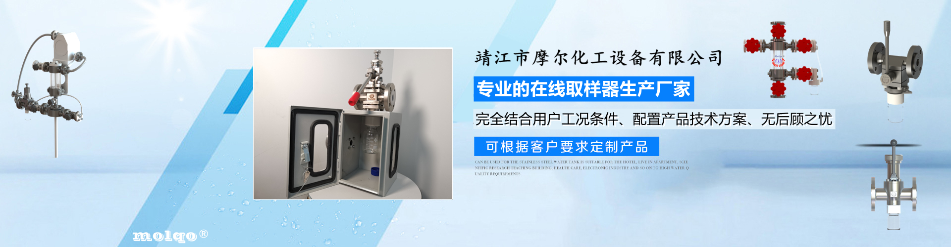 靖江市摩爾化工設(shè)備有限公司位于蘇中明珠——江蘇省靖江市城南工業(yè)園區(qū)東進(jìn)路北側(cè)天元艾爾瑞內(nèi),另有生產(chǎn)基地位于靖江市經(jīng)濟(jì)技術(shù)開(kāi)發(fā)區(qū)新號(hào)路1號(hào)鼎電科技園內(nèi)。我公司由數(shù)名長(zhǎng)期從事化工生產(chǎn)、氟塑襯里模具開(kāi)發(fā)以及機(jī)械自控設(shè)備的專業(yè)人員共同合作成立,致力于提供客戶最優(yōu)的高效在線取樣、反應(yīng)及精餾分離設(shè)備,為客戶提供合理的設(shè)備選型方案,以幫助客戶提高綜合生產(chǎn)效率以及改善生產(chǎn)現(xiàn)場(chǎng)環(huán)境為目標(biāo)。 本公司主要制造及銷售的產(chǎn)品有:釜用在線取樣裝置,管道取樣閥,釜用清洗噴淋裝置、搪玻璃設(shè)備、GMP專用搪玻璃設(shè)備、氟塑襯里設(shè)備、攪拌器、釜用機(jī)械密封、氣動(dòng)閥門(mén)及搪玻璃管道、襯氟閥門(mén)管道、非標(biāo)不銹鋼容器,精餾塔塔器、片式冷凝器及PTFE密封件、鋯、鈦、鉭、鎳等加工件制品。我司是一家集研發(fā)銷售、設(shè)計(jì)咨詢服務(wù)于一體的專業(yè)···